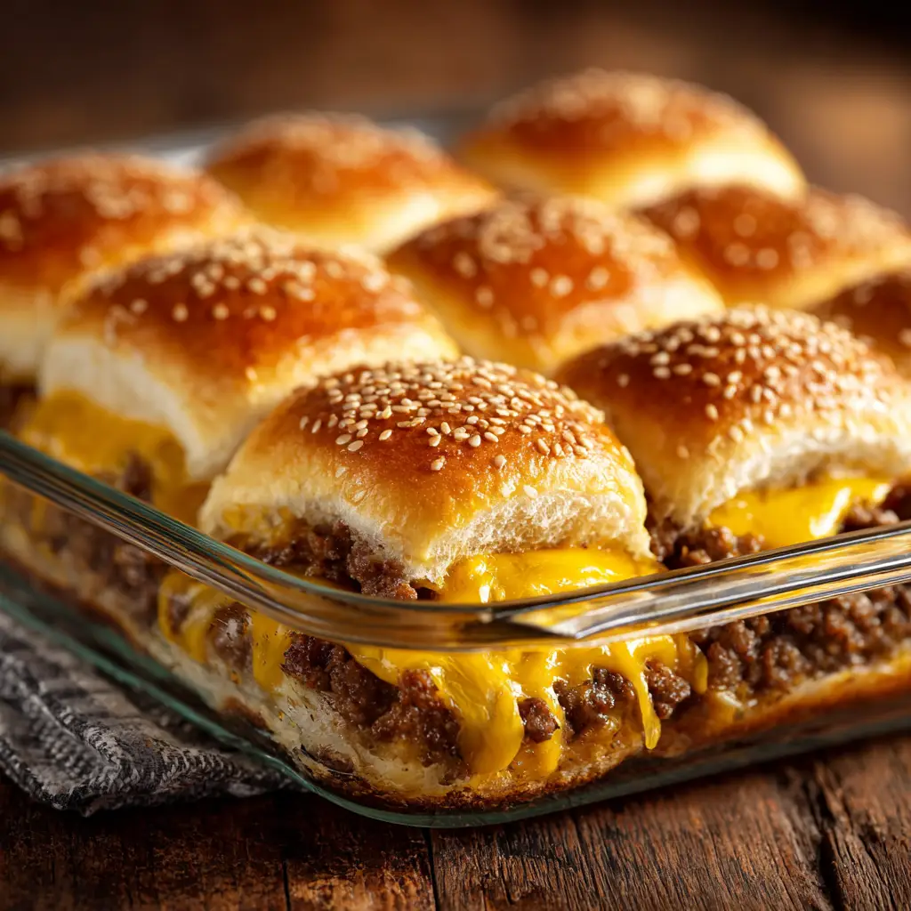 Get ready to meet your new favorite crowd-pleaser: these incredible Cheeseburger Sliders. This recipe transforms simple ground beef and soft Hawaiian rolls into the most savory, cheesy, and irresistible mini-burgers you’ve ever tasted. They are perfect for game day, easy family dinners, or any party where you need a guaranteed hit. We’re talking juicy beef, melted cheddar, and sweet rolls brushed with a savory butter topping that takes them over the top. Forget boring burgers; these pull-apart sliders are pure fun.