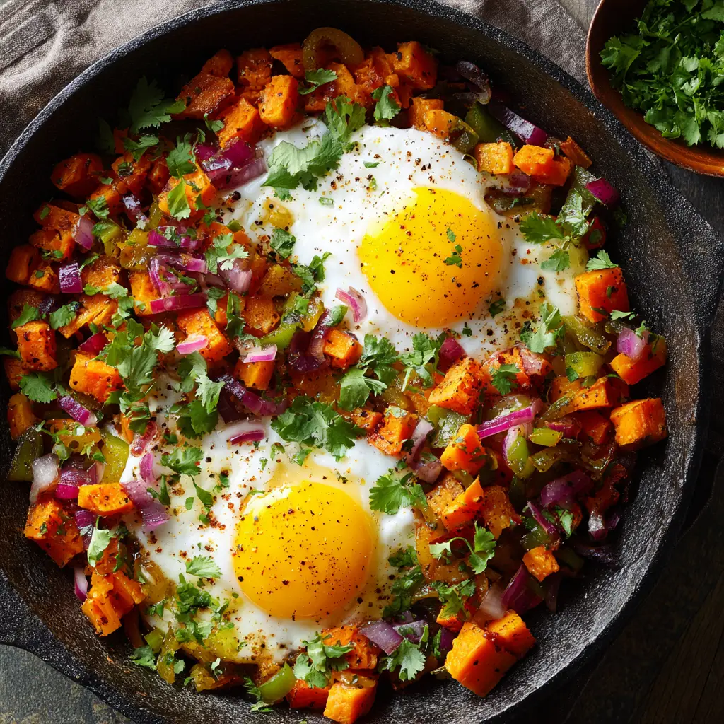Yes, it’s a very healthy and balanced meal. Sweet potatoes are a great source of fiber and vitamins A and C. The eggs provide high-quality protein, and the dish is packed with colorful vegetables, making it a nutrient-dense way to start your day.